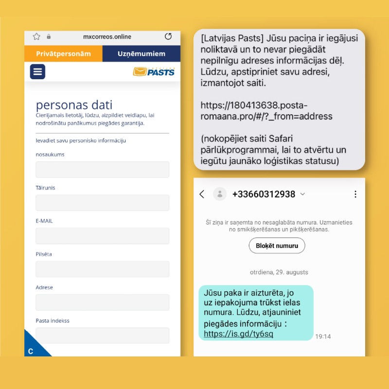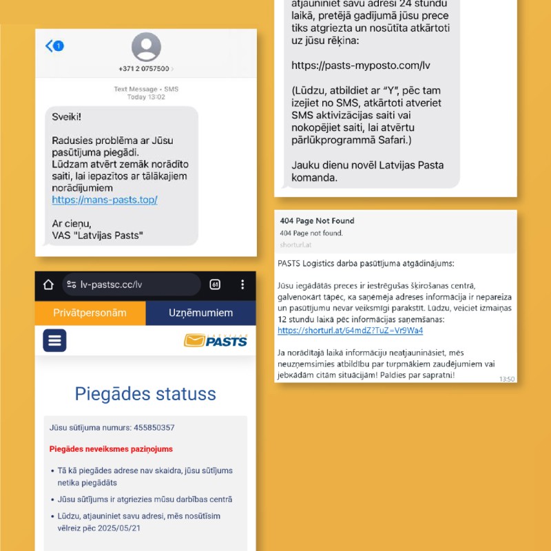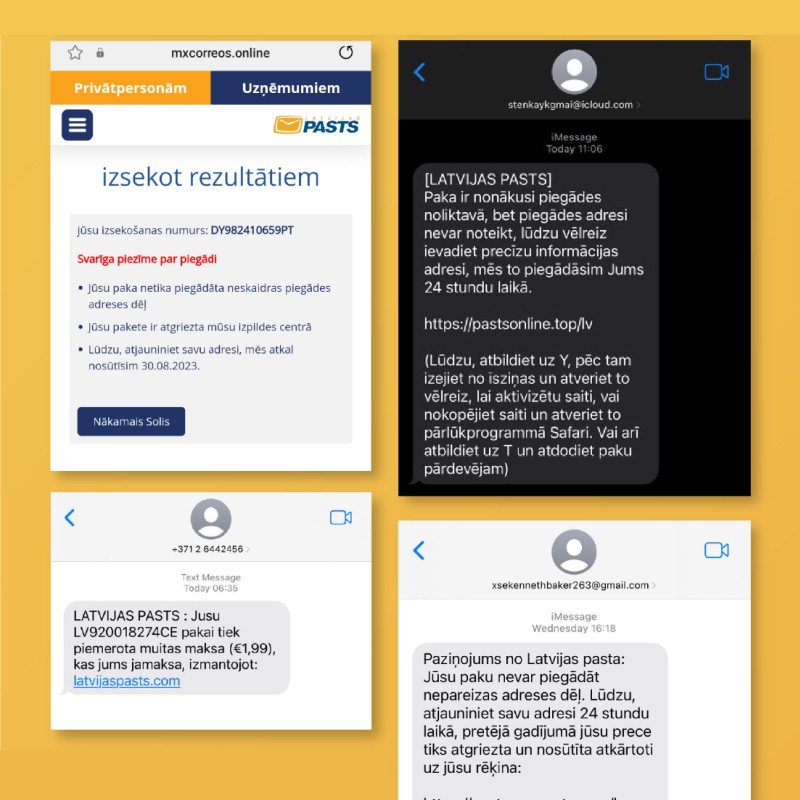 - sūta SMS vai e-pastus, aicinot it kā Latvijas Pasta vārdā precizēt sūtījuma datus vai piegādes adresi;