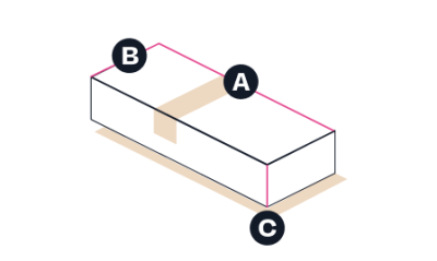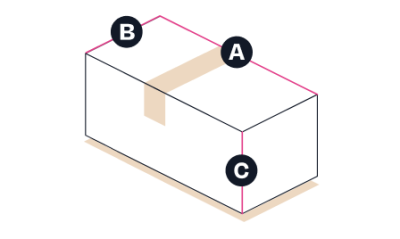 A + B + C < 90 cm; A= max 60 cm; C= max 2 cm